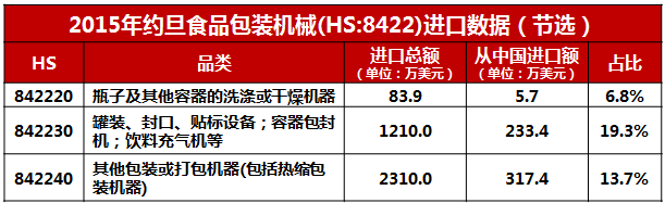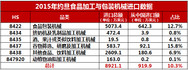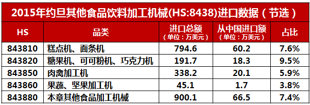 目前約旦主要進口“食品包裝機械、其他食品飲料加工機械”兩大類設(shè)備;