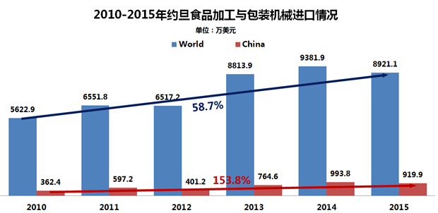 雖然約旦食品行業(yè)規(guī)模不大(國家人口僅759萬人),但其食品加工業(yè)已初具規(guī)模,2015年相關(guān)食品機械的進口額達到8921.1萬美元。