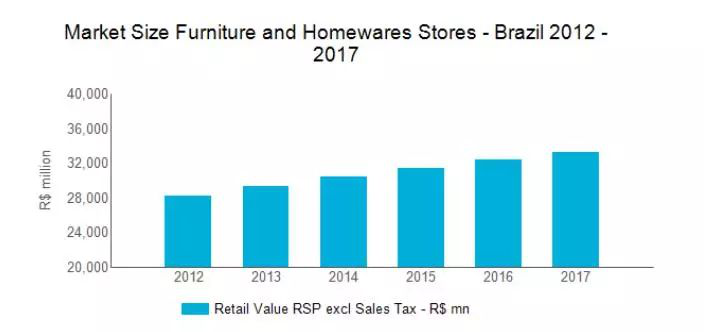 圖表:2012-2017年巴西家具家居商店增長(zhǎng)趨勢(shì)(圖)