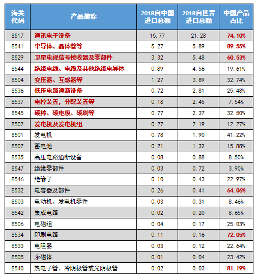 2018年埃及從中國進口的電力設(shè)備中,通訊電子設(shè)備占比最多,占比52%,半導(dǎo)體、晶體管、衛(wèi)星電視信號接收器及零部件等分別排名二、三,占比18%和11%。