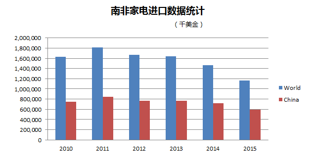2015年中國家電出口額占南非總進口的近60%。